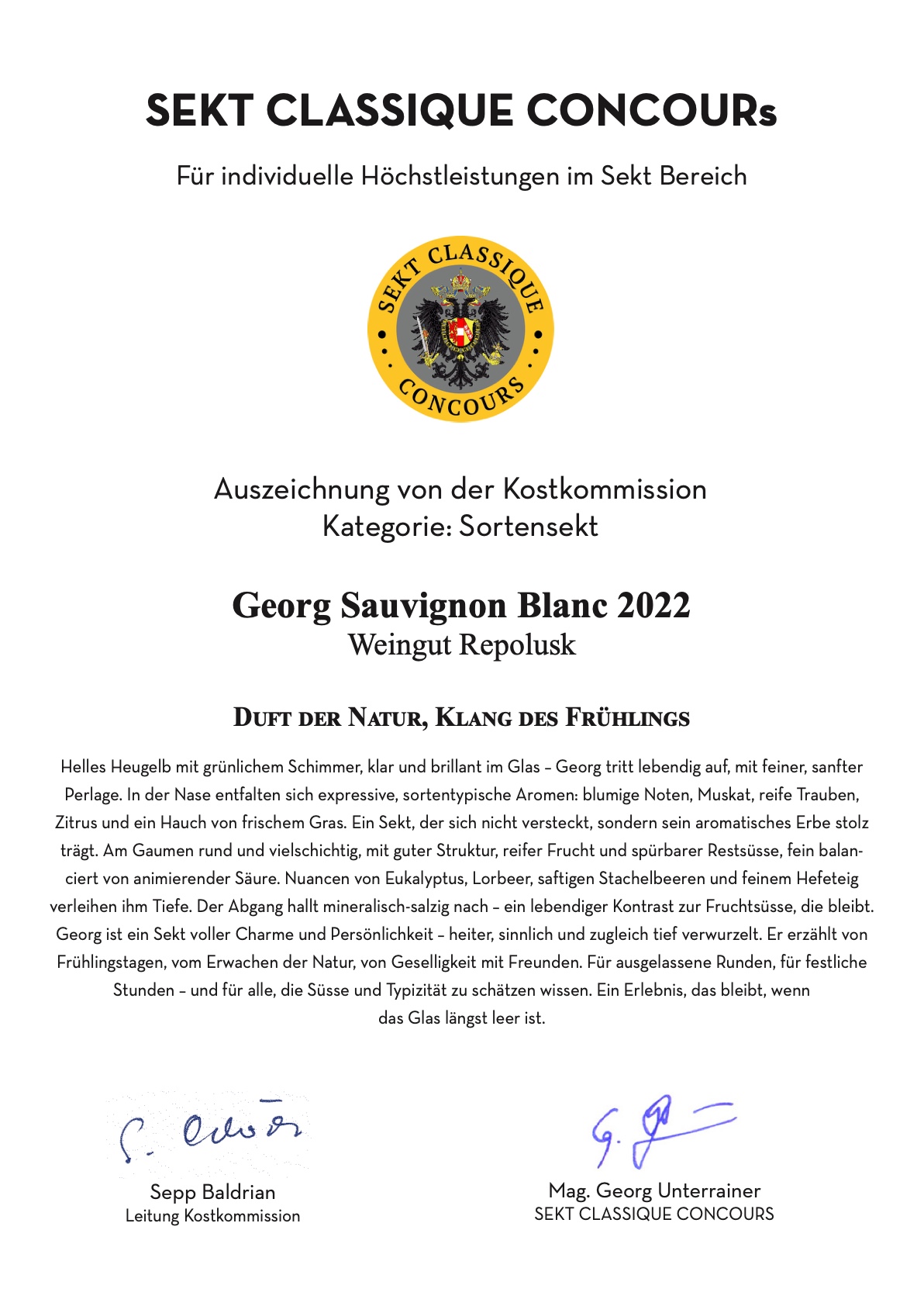 „GEORG“ – Sauvignon Blanc Qualitätssekt